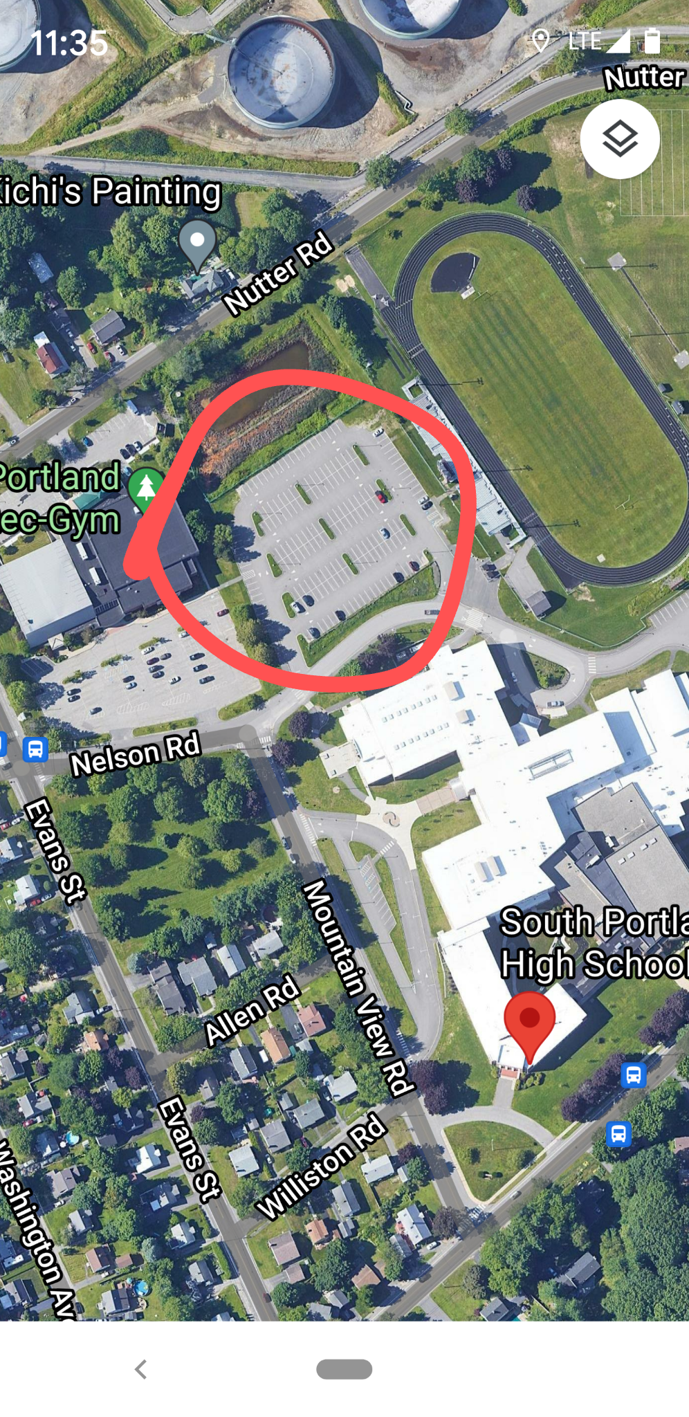 school parking lot on Mountain Ridge and Nelson roads in South Portland