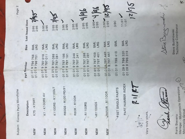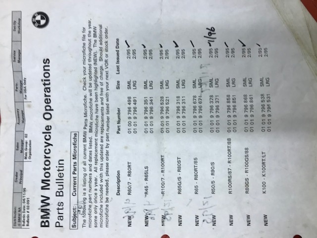 for R models, GS, R11, K100, K1100, K1 & F650 Parts fiche for R50-R90S, R65