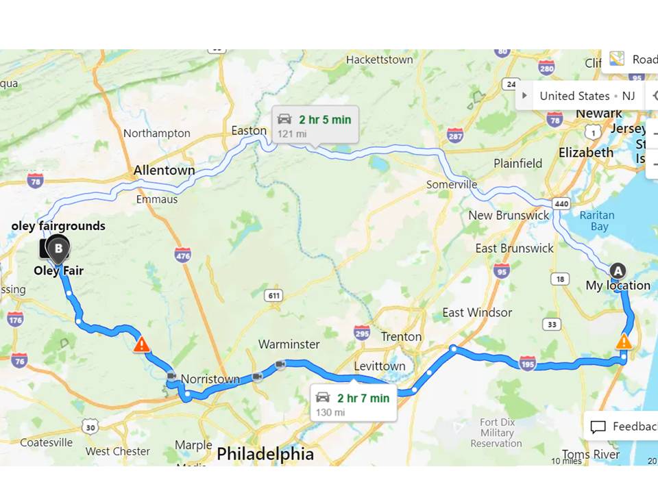 The event is at Oley Fairgrounds in PA.... about 130 miles one way. See the attachment.