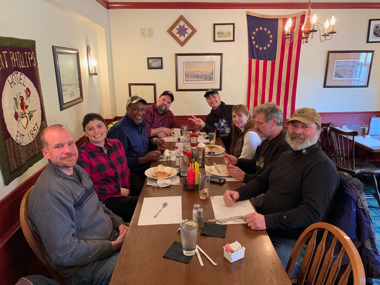 The remaining six of us continued on with the ride to the Point Phillips Hotel. I felt very bad for our hosts at the hotel, because I reserved the whole back room for twenty of us, somehow they thought I said twenty-six, which made the situation even worse, because they brought in extra staff just for us.