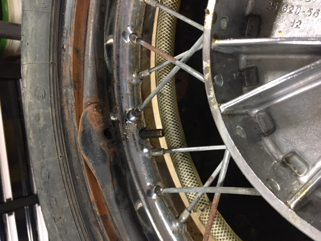 I did swap the tire and tube on the chair as well. Pulling the tube, the valve stem stayed in the rim hole. I wonder how the damn thing stayed together and held air!!