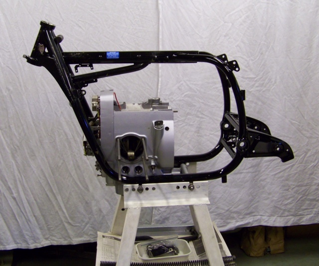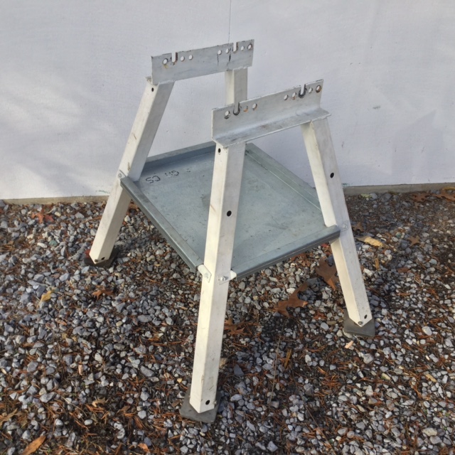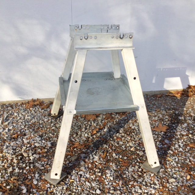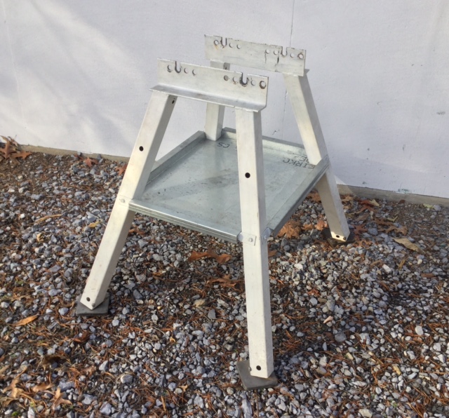 28" L X 32" W X 30" H; utilizes frame-to-engine thru-studs to support all the work: chain case, heads/slugs/jugs, clutch/flywheel, starter to oil pan, all are easily accessed. Addition of other major and minor components, just as easy ! Combination tool tray and catch pan shelf mid-height; 'floating' rubber pads backed with steel plates, keep it in place...