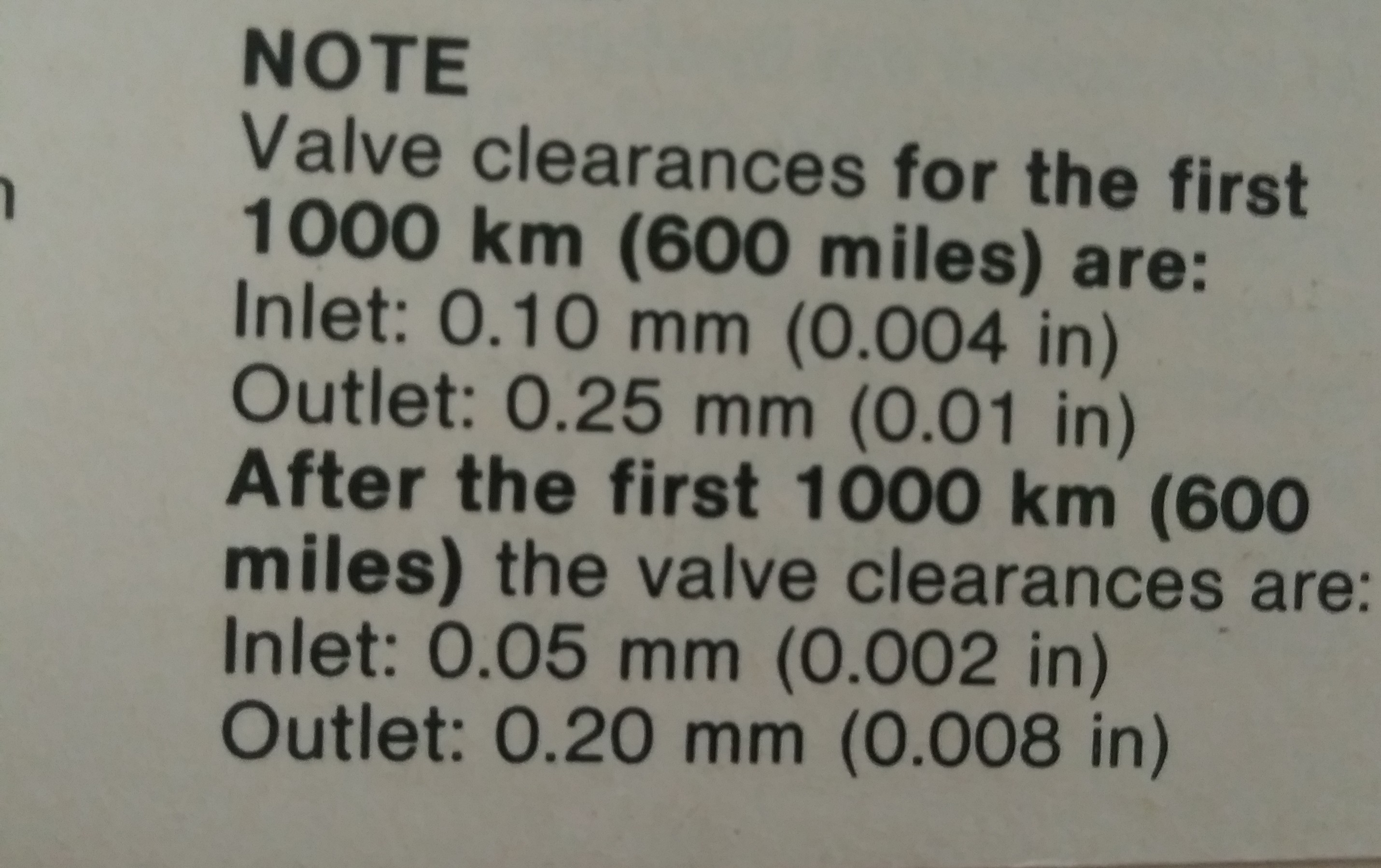 And Then more uncertainty abounds by checking the R65LS manual which says after first 600 miles the valve clearances are: “Inlet: 0.05 mm (0.002 in) Outlet 0.20 mm (0.008 in).