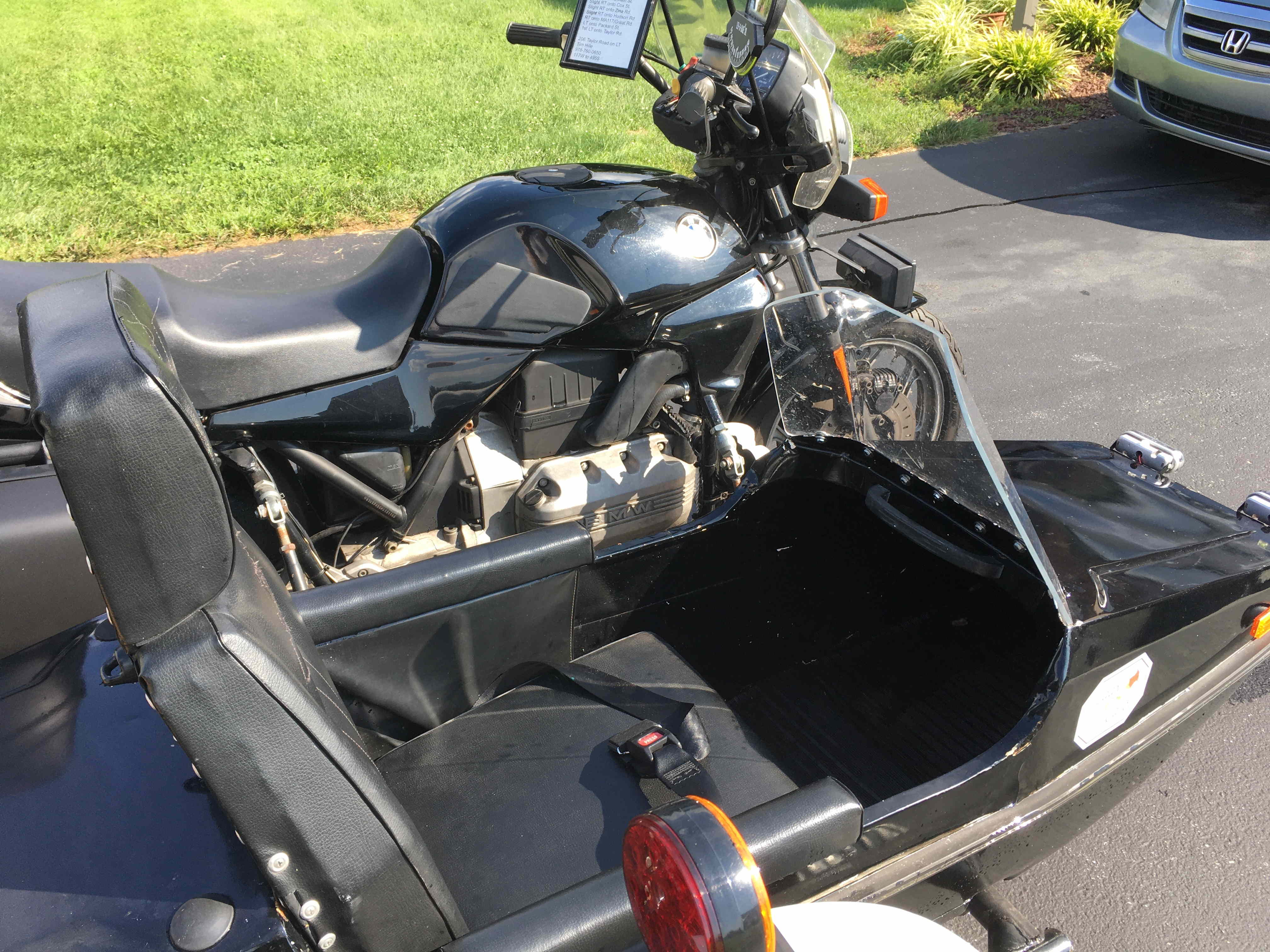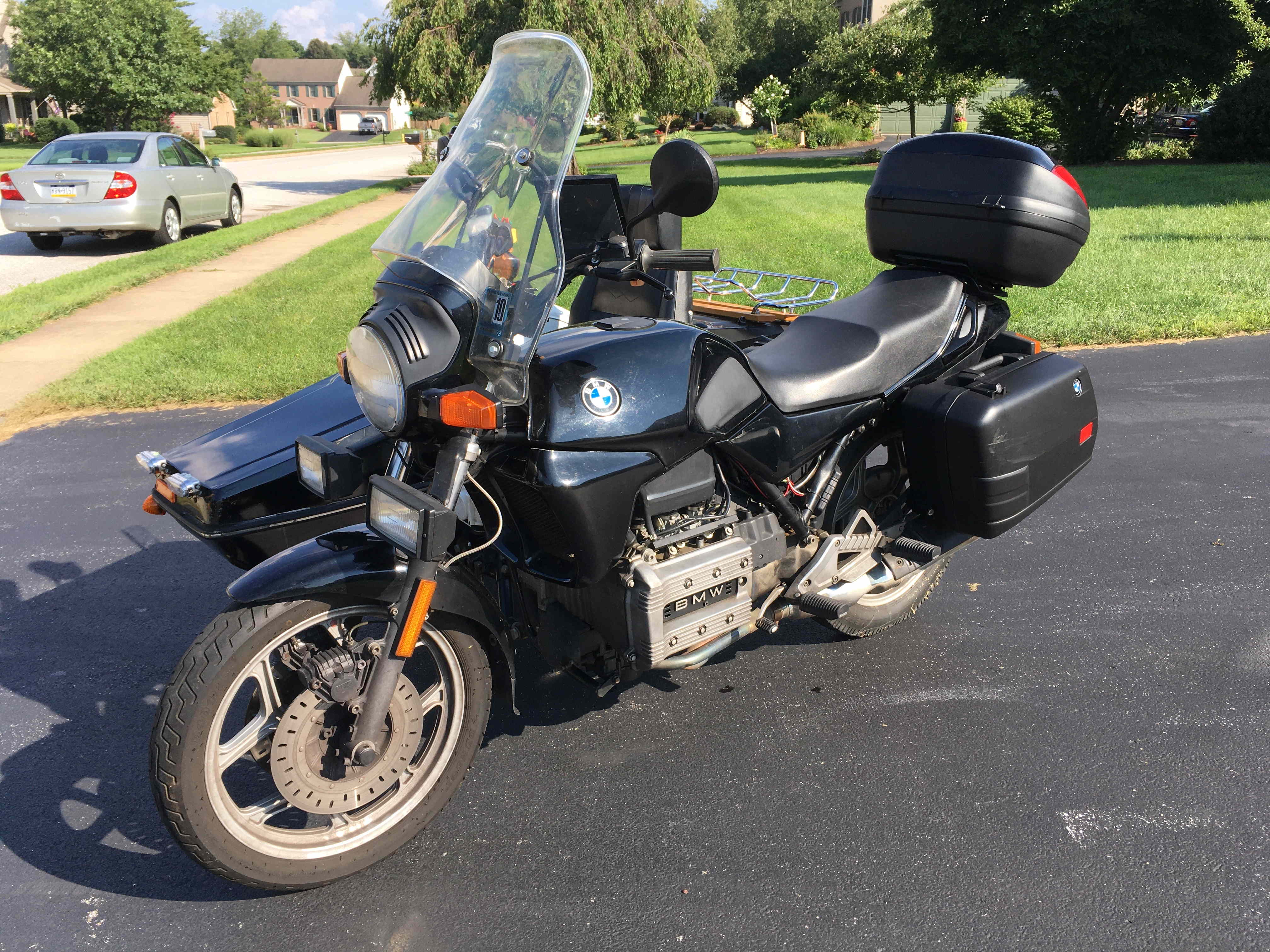 The bike is a 1987 K75C -- not a K100. The bike has plenty of power to boss around the sidecar, passenger and a full load of camping equipment. No issues hauling it all down the road at more-than-legal highway speeds.